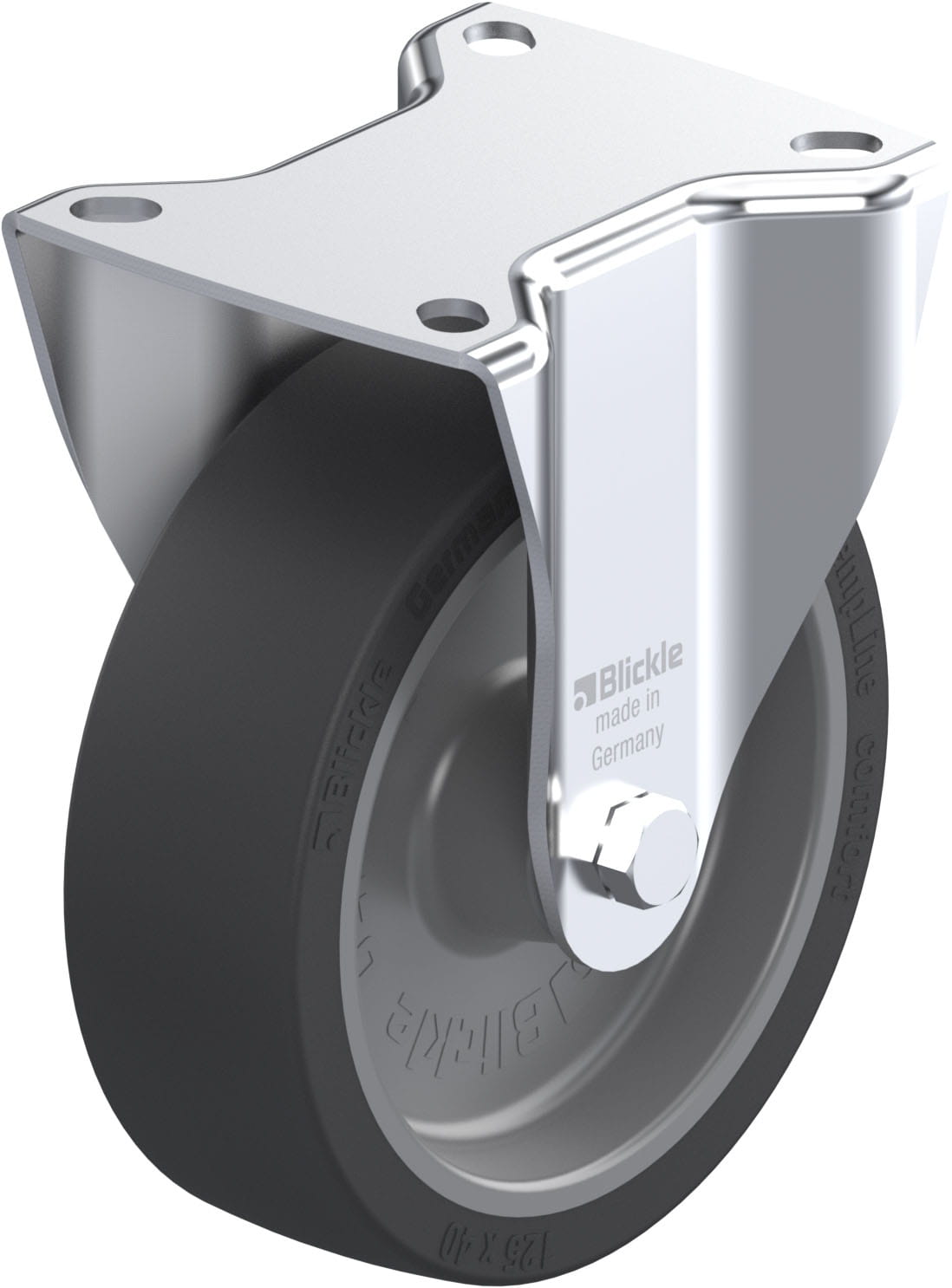 Pressed steel fixed castor, medium duty design, with top plate fitting, Blickle TempLine® Comfort wheel, with silicone rubber tread, with synthetic w...