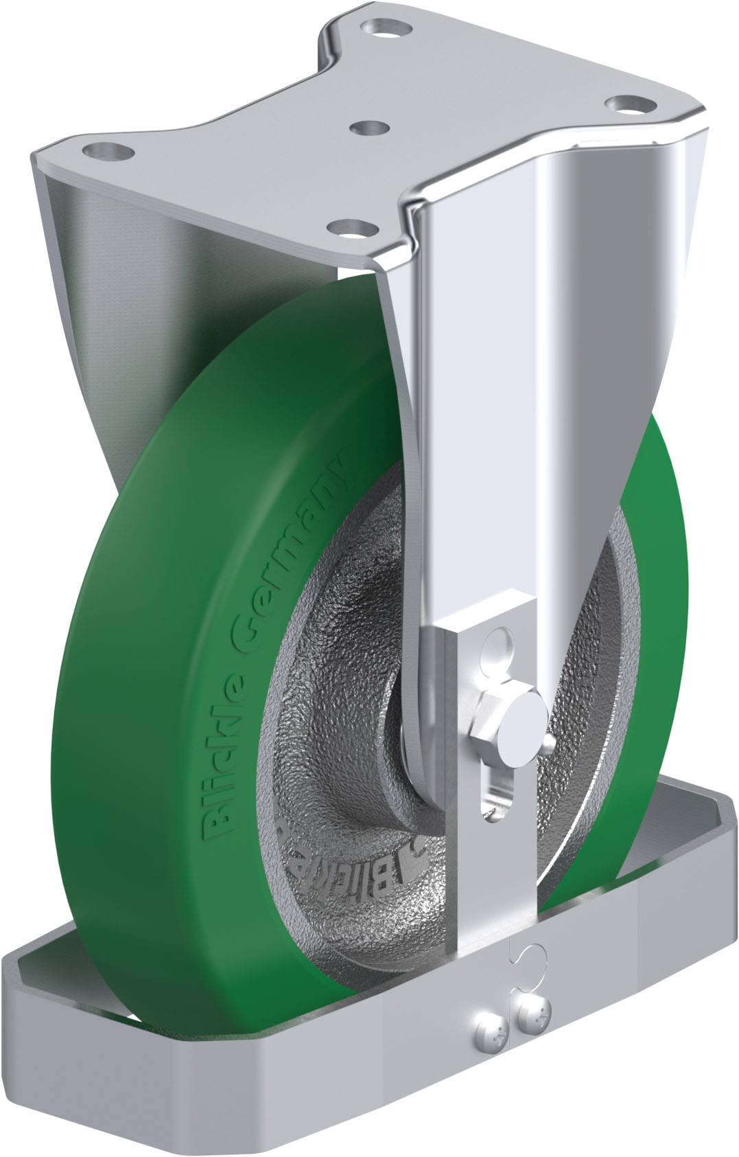 - tread: high-quality polyurethane elastomer Blickle Softhane®, hardness 75 Shore A, colour green, non-marking, non-staining
