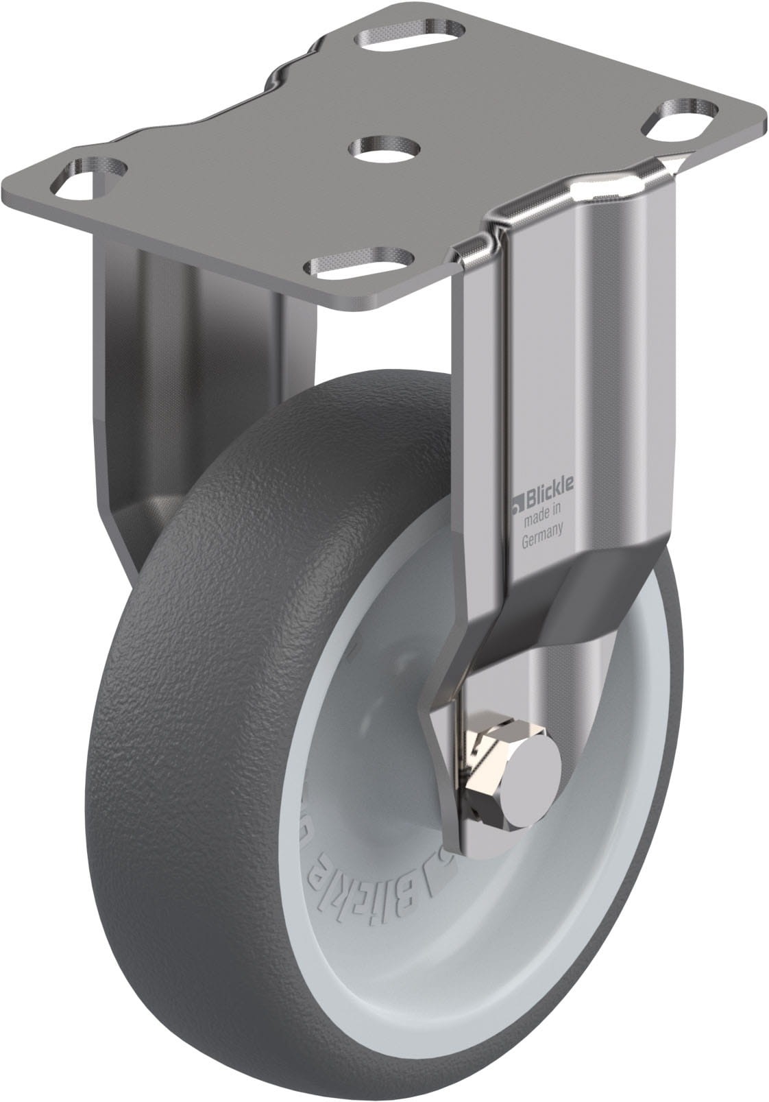 Stainless steel light duty fixed castor, with top plate fitting Wheel, with thermoplastic polyurethane tread, with nylon wheel centreBracket: BKPXA se...