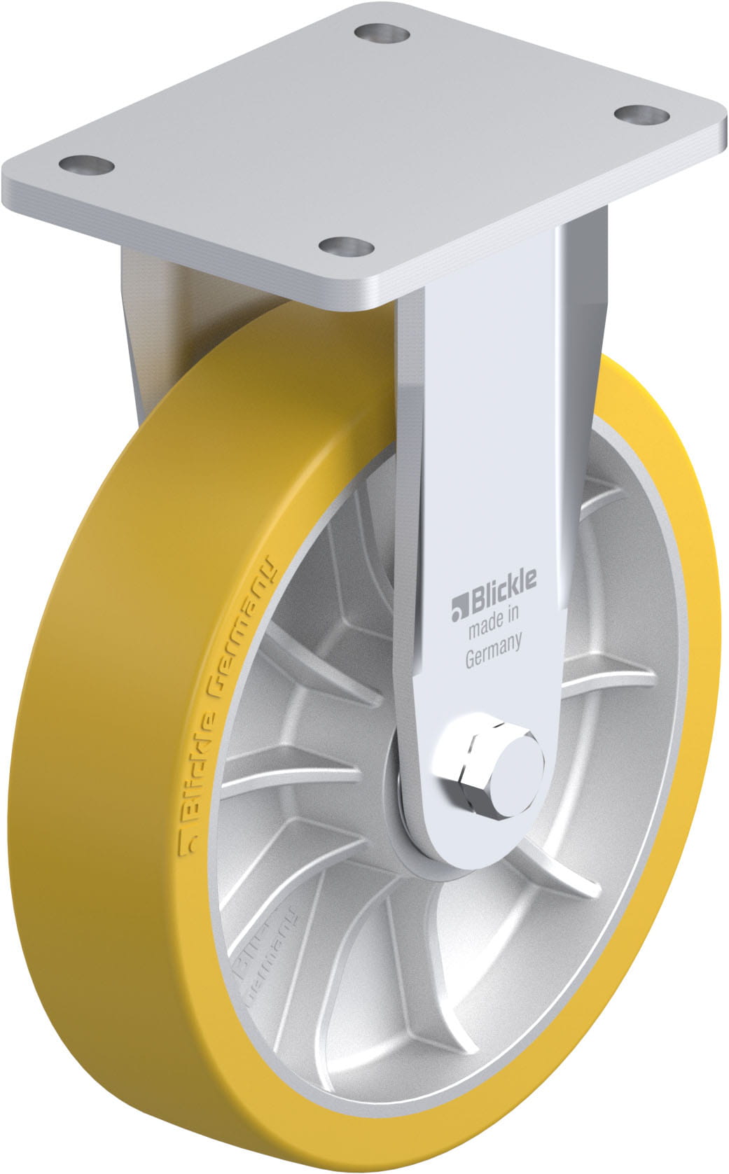 Heavy duty welded steel fixed castor, heavy duty wheel, with Blickle Extrathane® polyurethane tread, with aluminium wheel centreBracket: BO seriessol...