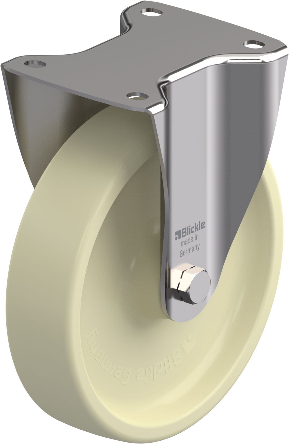 Stainless steel fixed castor, with top plate fitting, nylon wheel