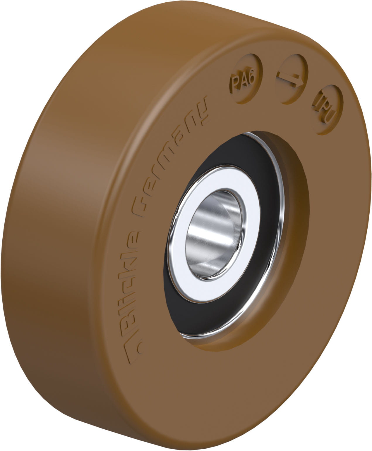 Guide roller, with thermoplastic polyurethane treadTread:high-quality thermoplastic polyurethane (TPU), hardness 98 Shore Avery low rolling resistan...