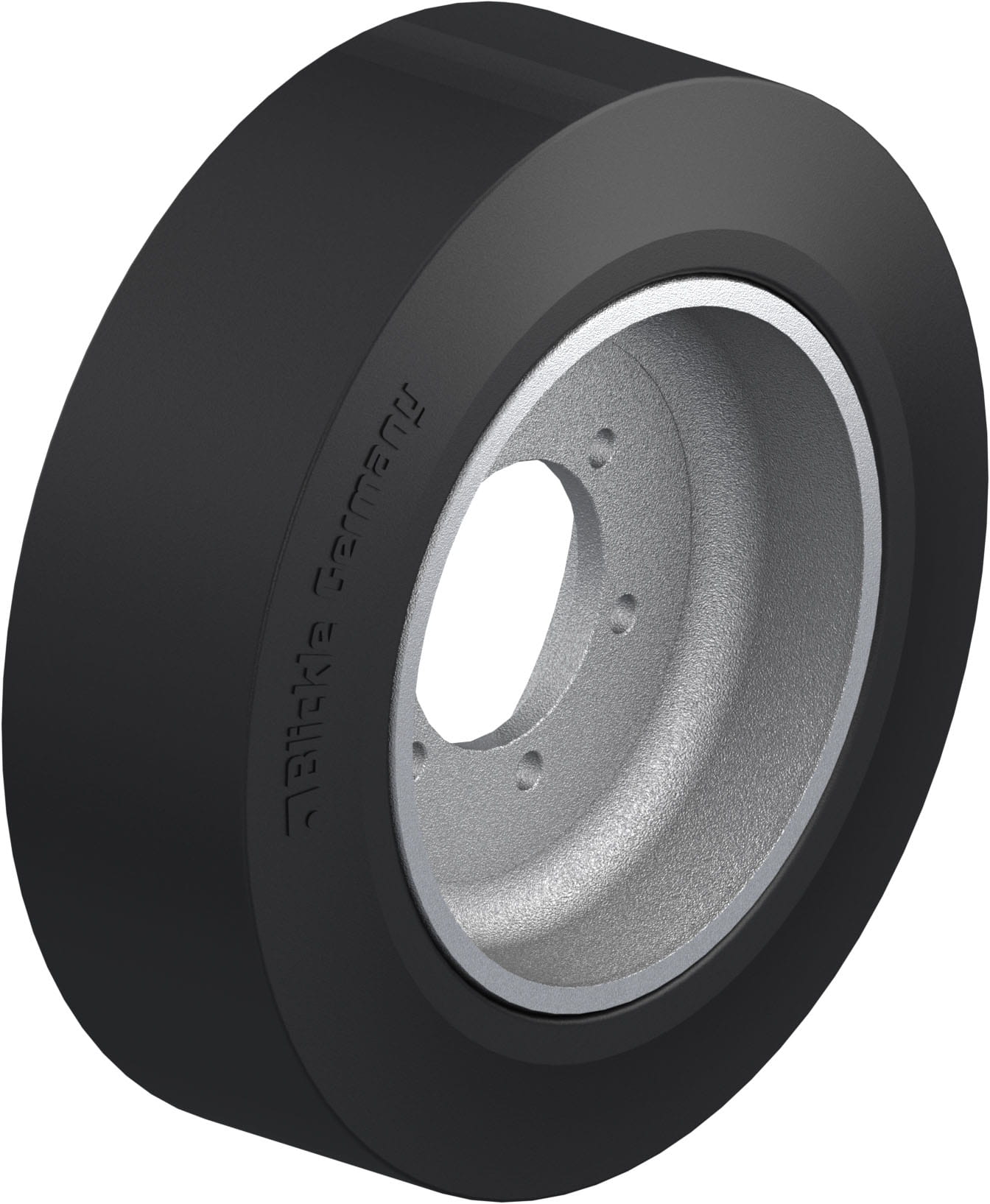 Heavy duty hub fitting wheel, with elastic solid rubber tyre, with cast iron wheel centre