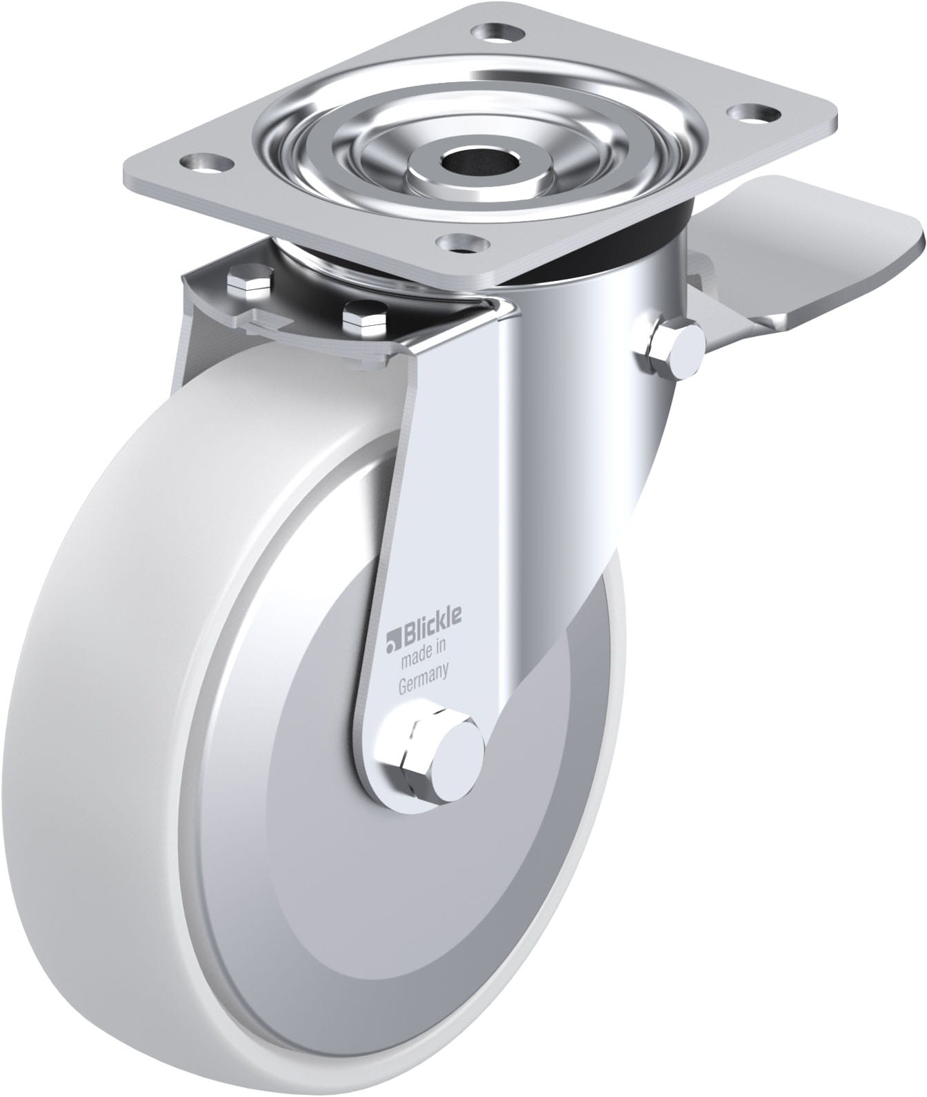 - minimum swivel head play and smooth rolling characteristic and increased service life due to the special dynamic Blickle riveting process
