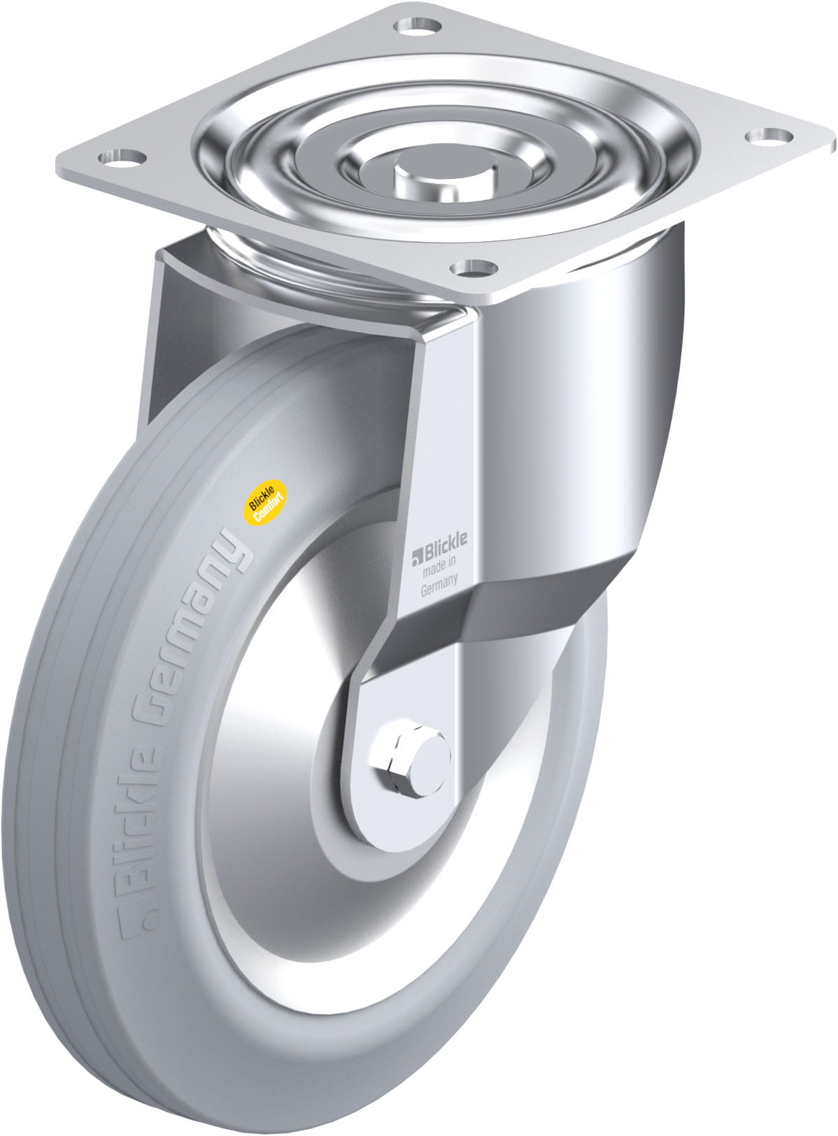 - tyre: two-component solid rubber “Blickle Comfort”, hardness 56 Shore A, colour grey