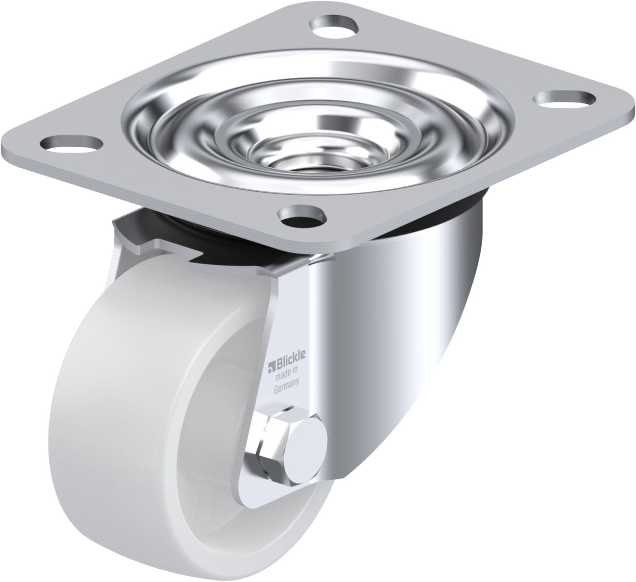 - minimum swivel head play and smooth rolling characteristic and increased service life due to the special dynamic Blickle riveting process