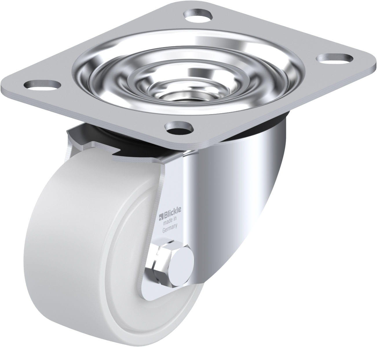 - minimum swivel head play and smooth rolling characteristic and increased service life due to the special dynamic Blickle riveting process
