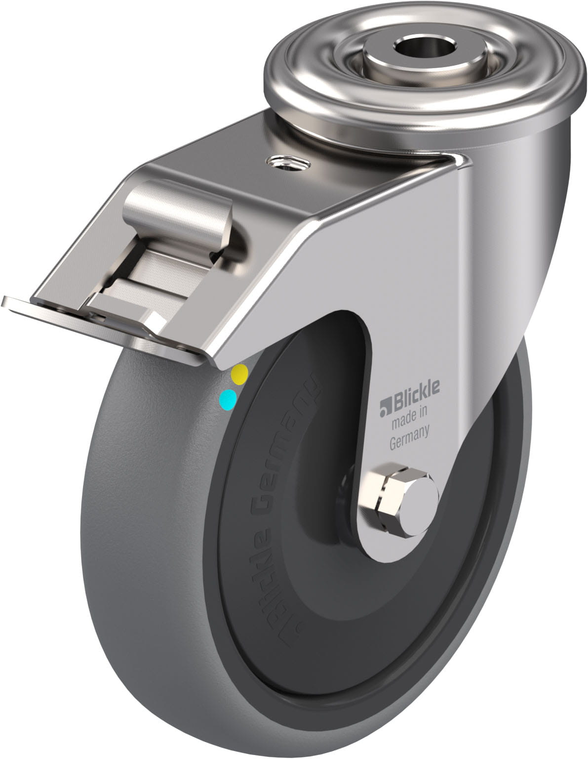 - minimum swivel head play and smooth rolling characteristic and increased service life due to the special dynamic Blickle riveting process