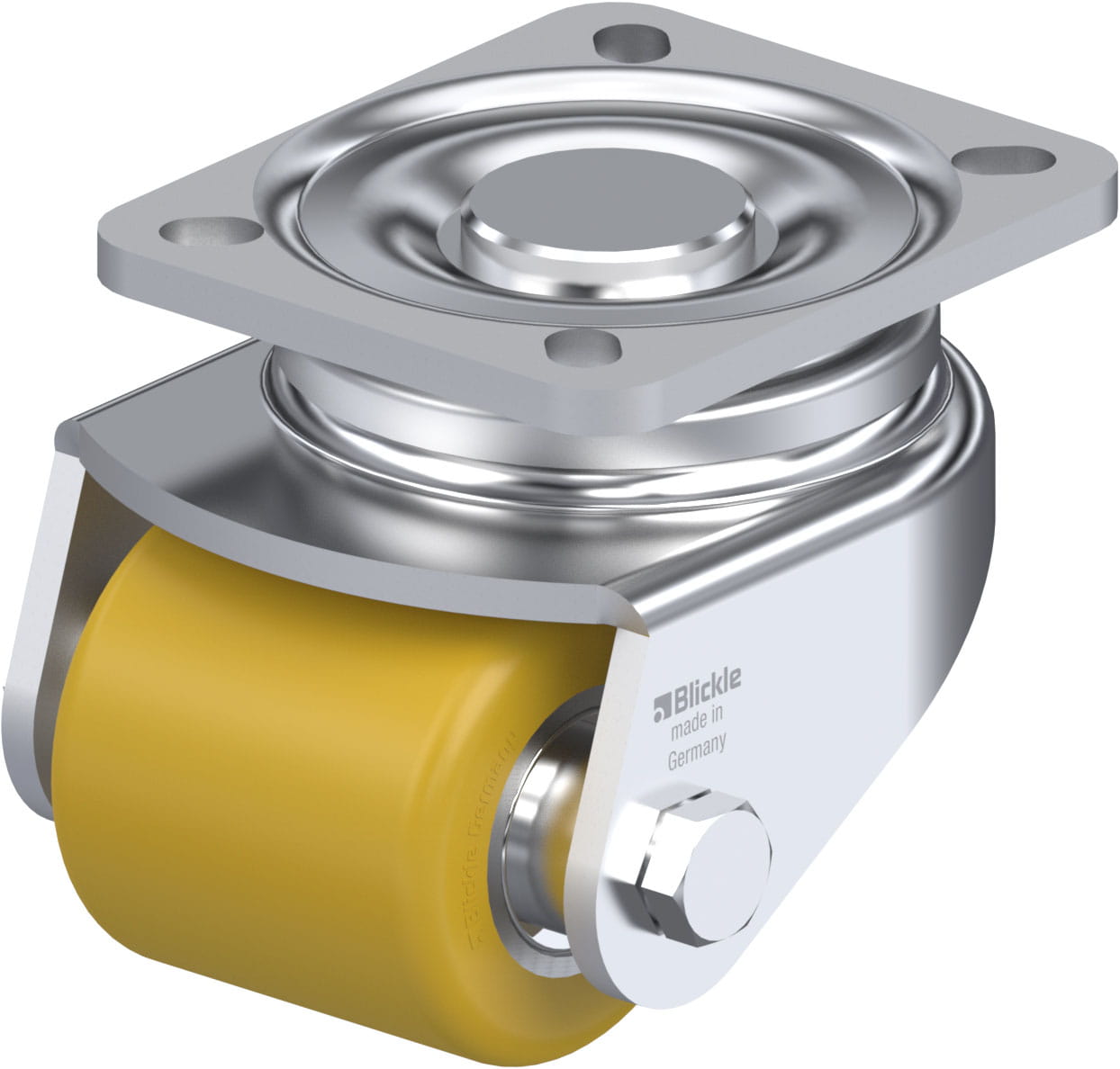 - tread: high-quality polyurethane elastomer Blickle Extrathane®, hardness 92 Shore A, colour light brown, non-marking, non-staining