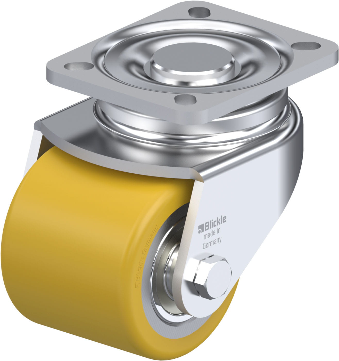• tread: high-quality polyurethane elastomer Blickle Extrathane®, hardness 92 Shore A, colour light brown, non-marking, non-staining