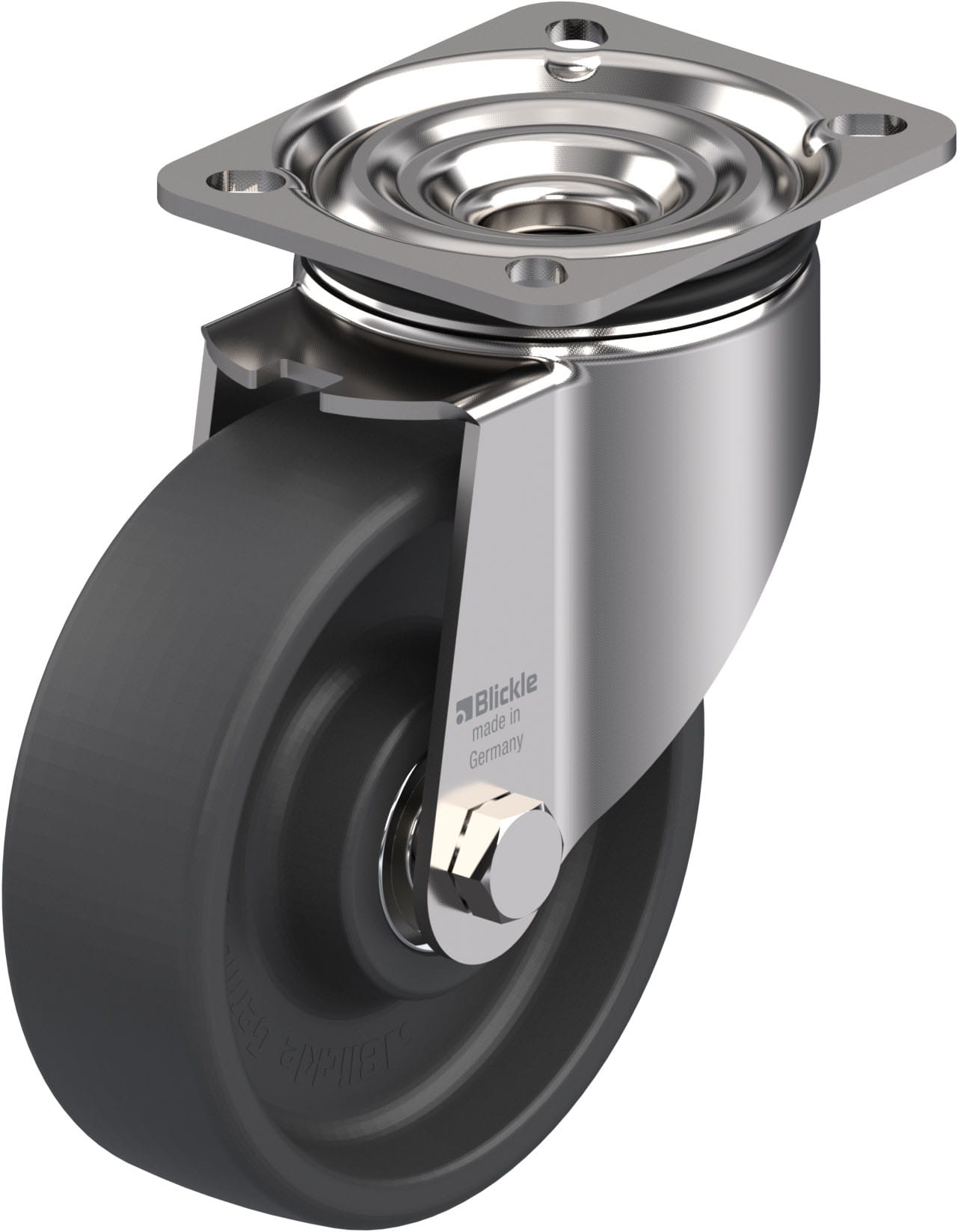 Stainless steel swivel castor, with top plate fitting, heat-resistant, Blickle TempLine® Performance thermoplastic wheel, heat-resistant