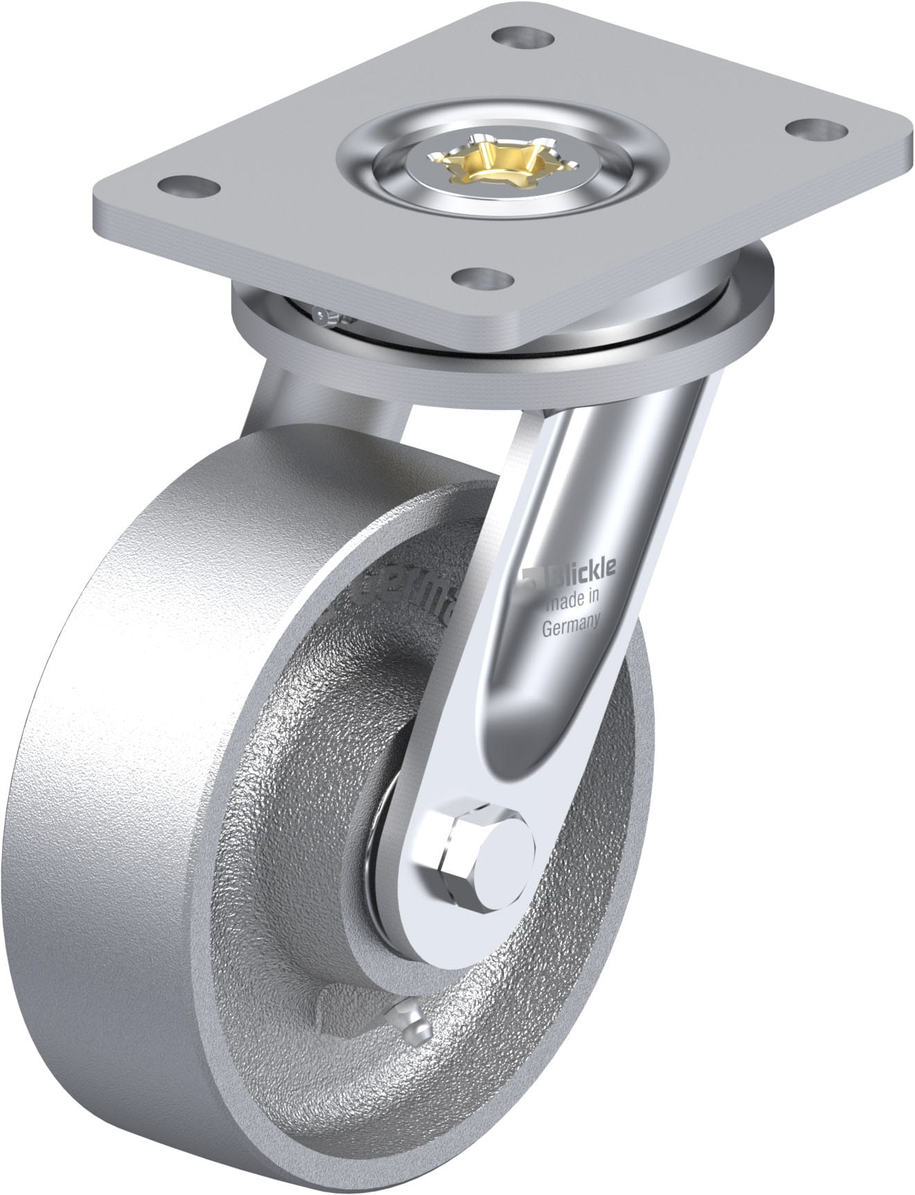 - rugged grey cast iron, hardness 180–220 HB, grease nipple, lacquered, colour silver