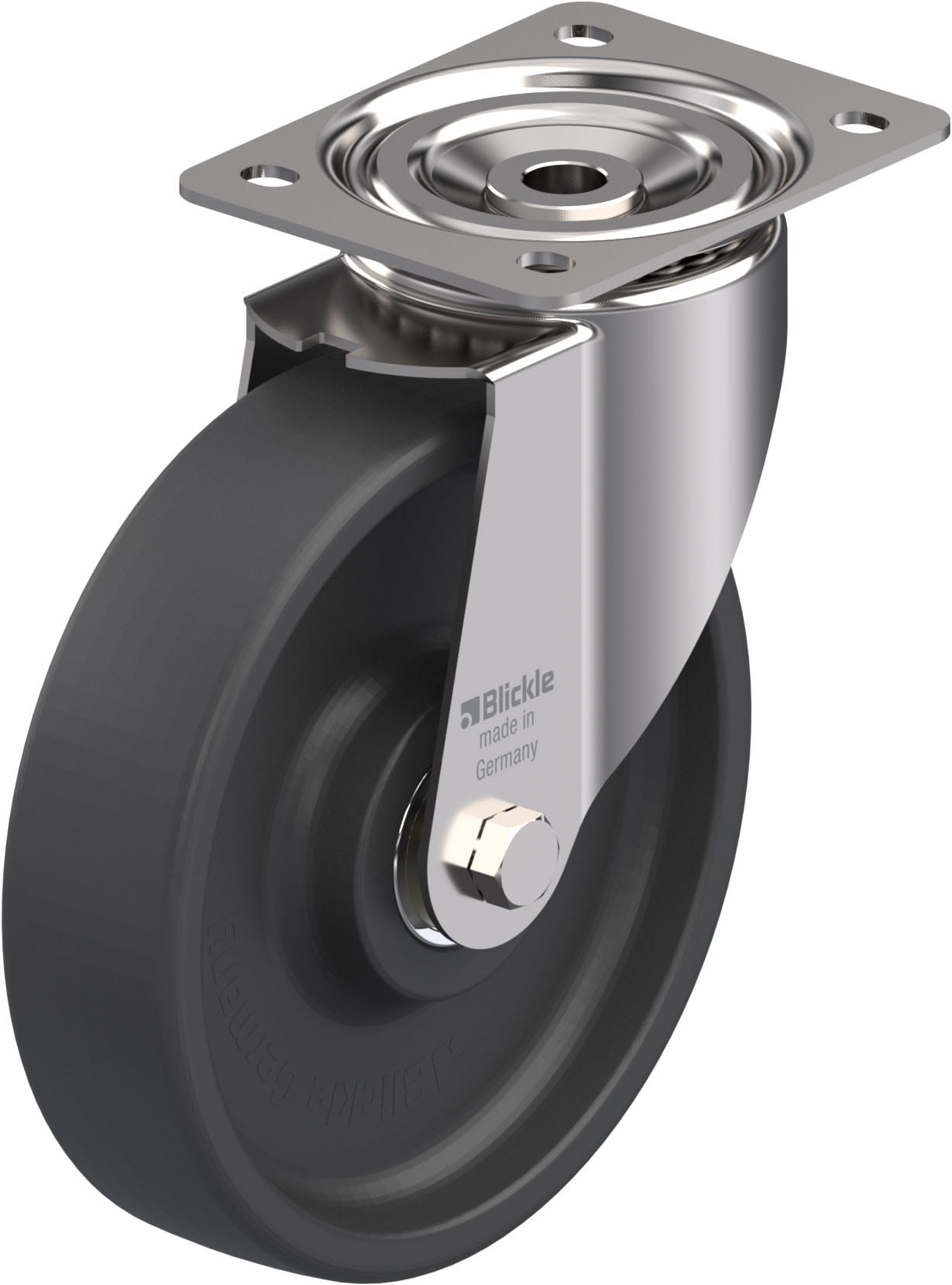 Stainless steel swivel castor, with top plate fitting, heat-resistant, Blickle TempLine® Performance thermoplastic wheel, heat-resistant