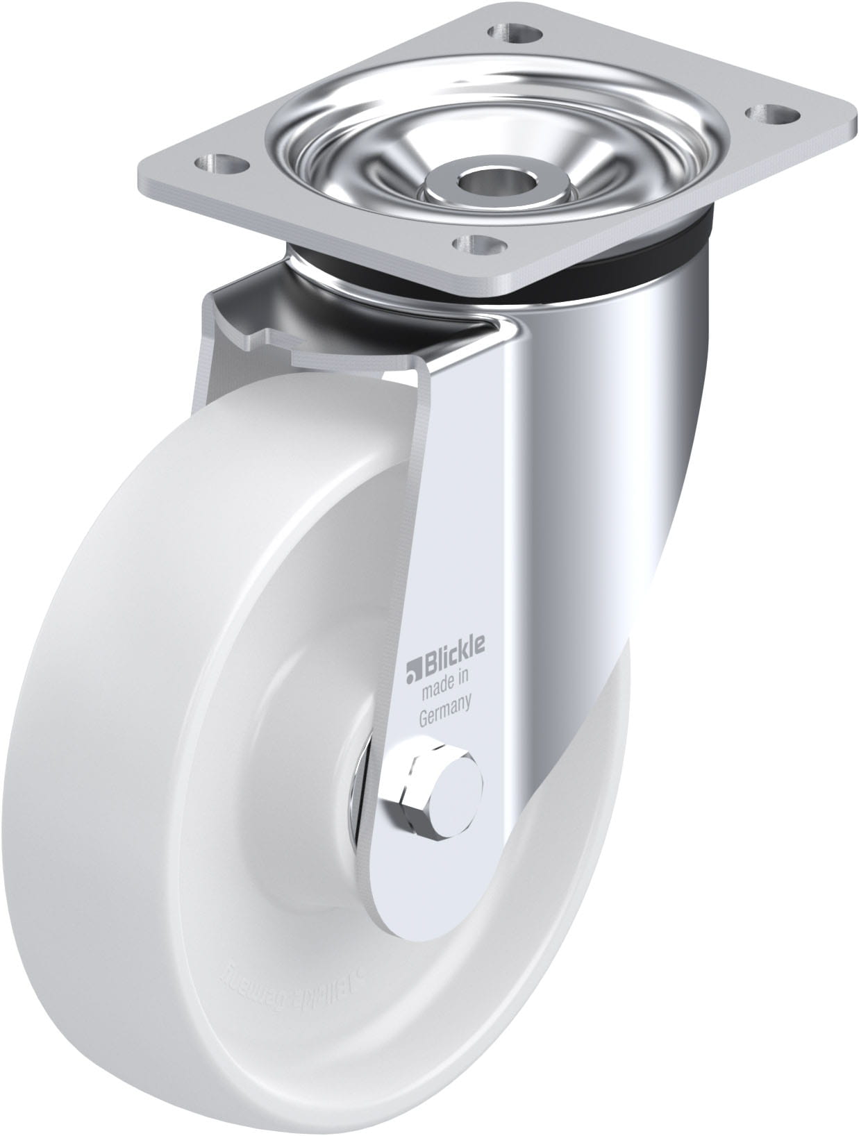 - minimum swivel head play and smooth rolling characteristic and increased service life due to the special dynamic Blickle riveting process