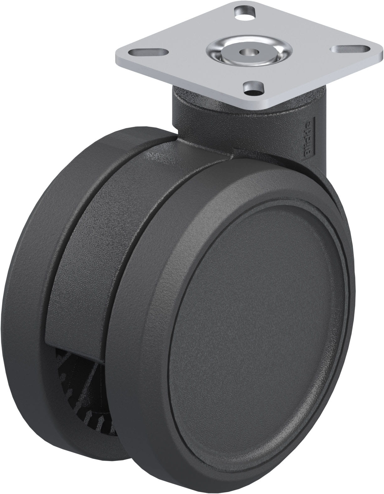 Synthetic twin wheel swivel castor, with top plate fitting, wheel, with thermoplastic polyurethane tread, with nylon wheel centreBracket: LKDB seriesh...