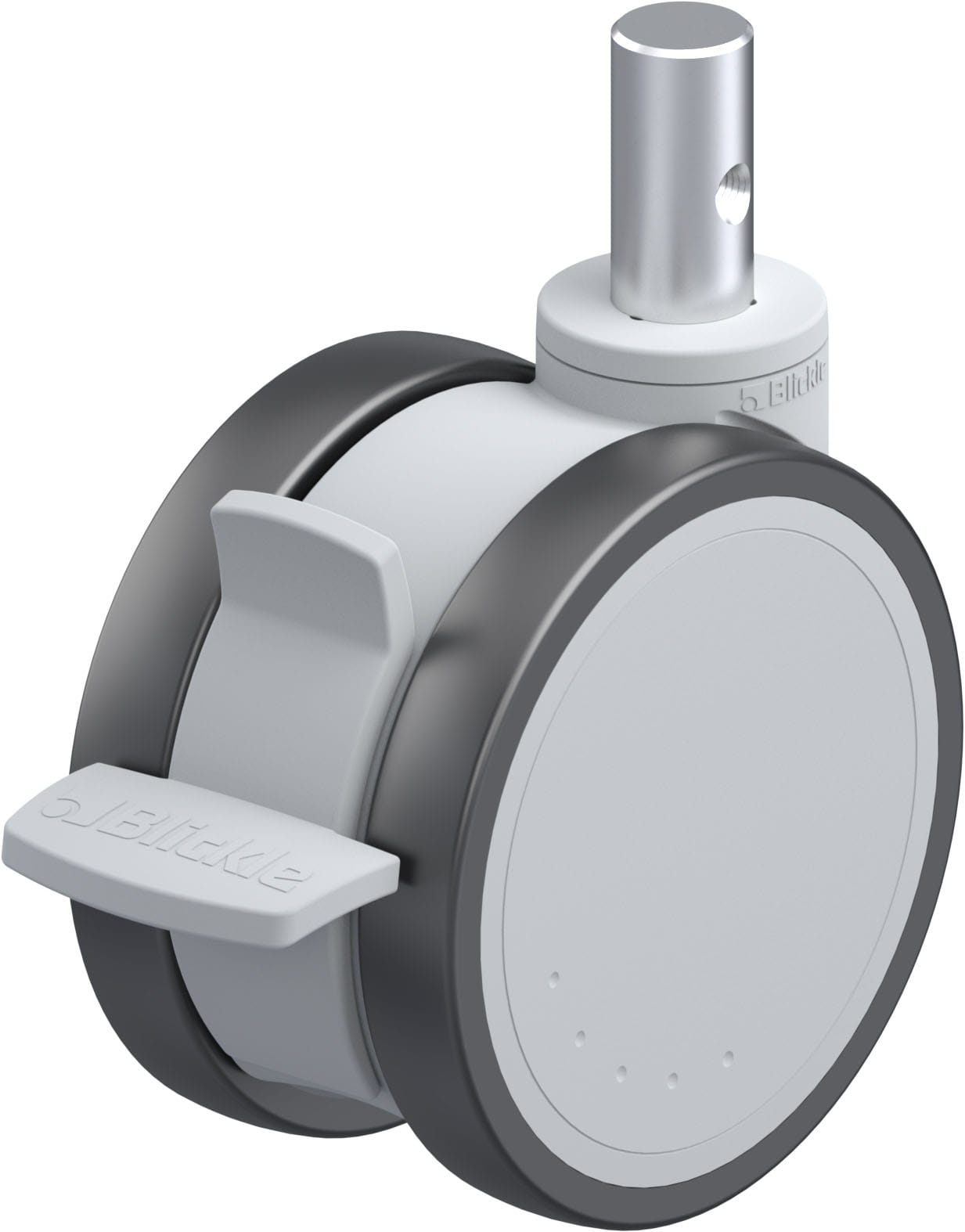 Blickle synthetic twin castor MOVE, colour silver grey, with stem fitting, with brake system ‘stop-fix’, wheel, with thermoplastic polyurethane tread, with nylon wheel centre