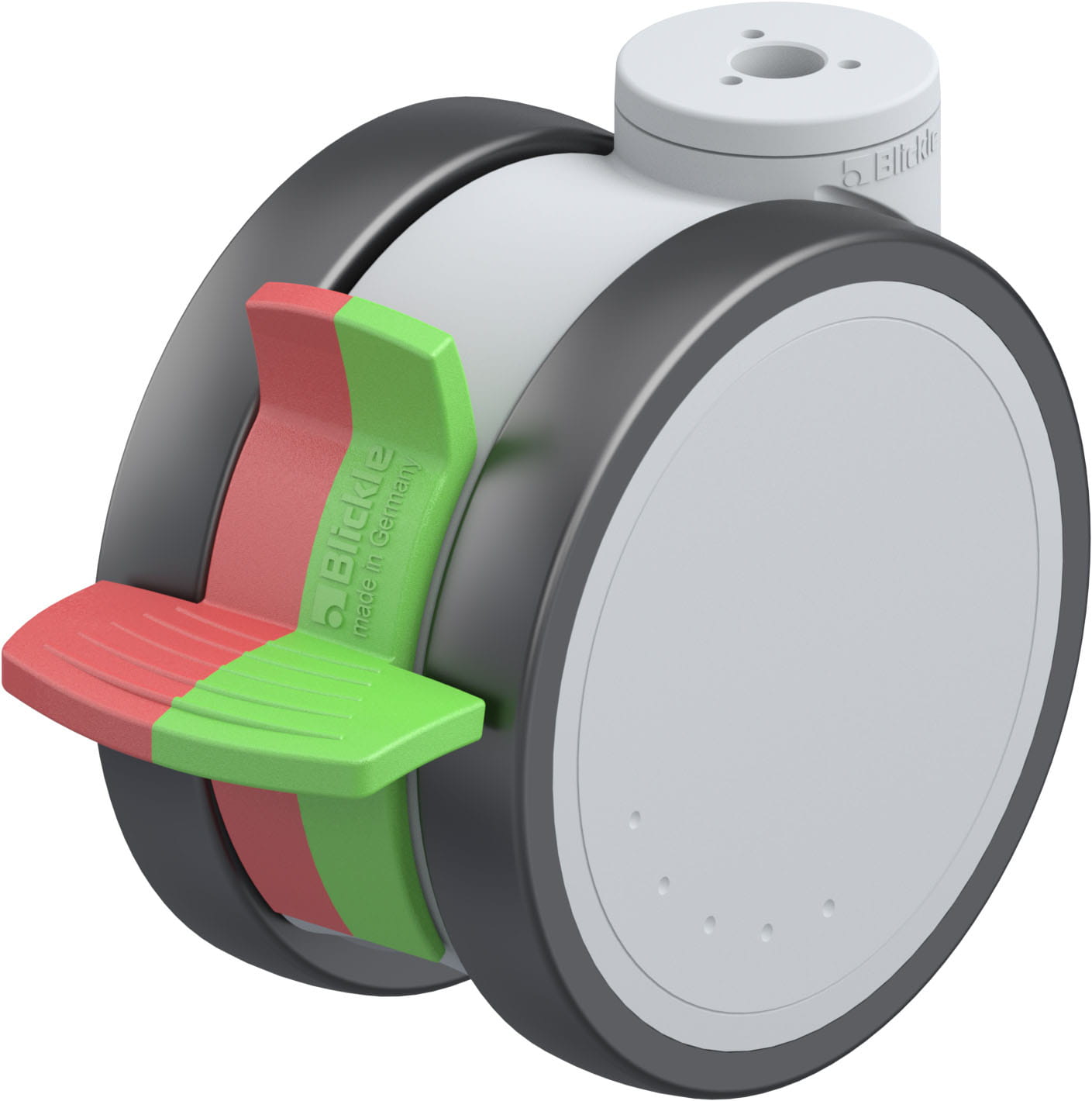 Blickle synthetic twin castor MOVE, colour silver grey, with directional lock combined, with wheel brake, wheel, with thermoplastic polyurethane tread...