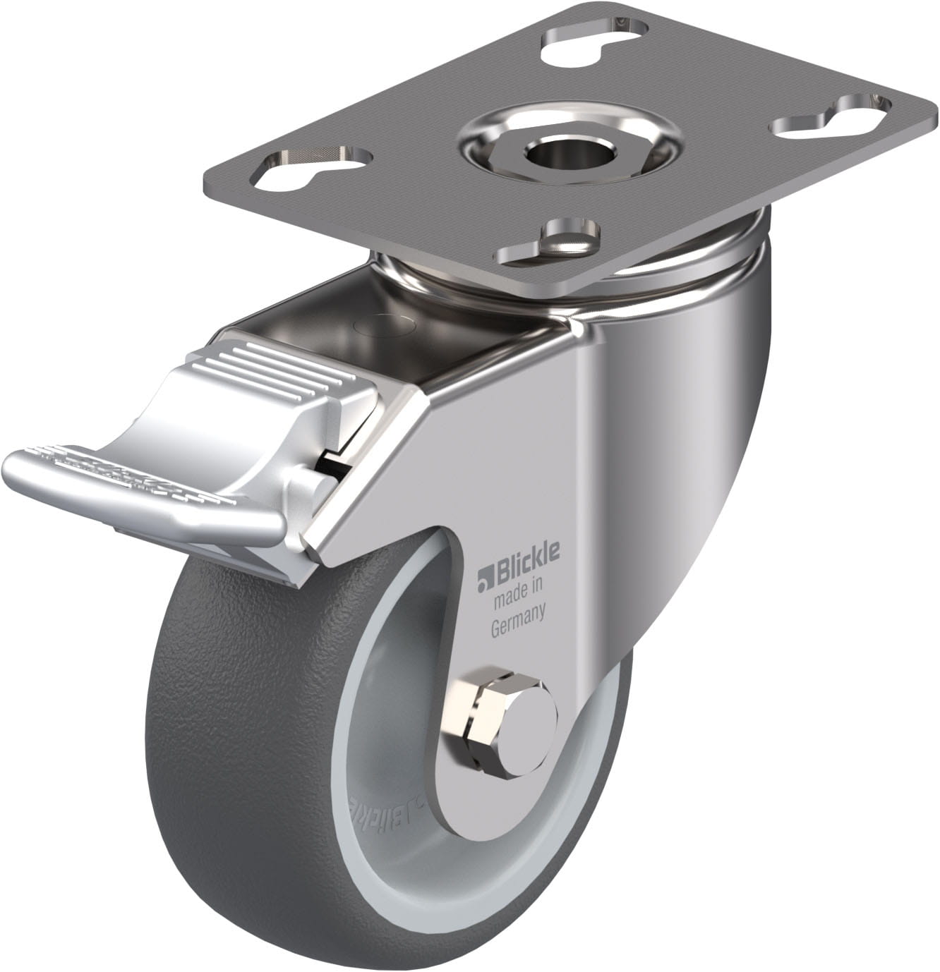 - minimum swivel head play and smooth rolling characteristic and increased service life due to the special dynamic Blickle riveting process