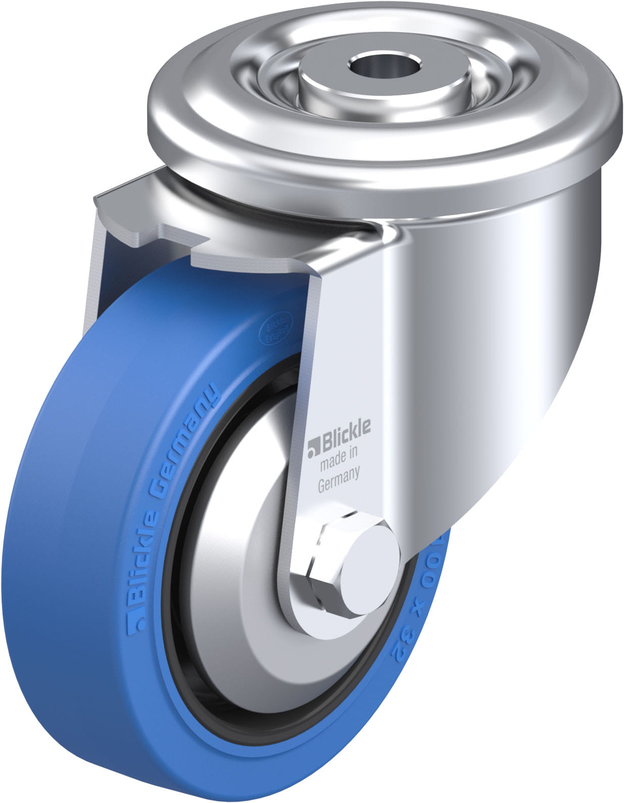 - minimum swivel head play and smooth rolling characteristic and increased service life due to the special dynamic Blickle riveting process