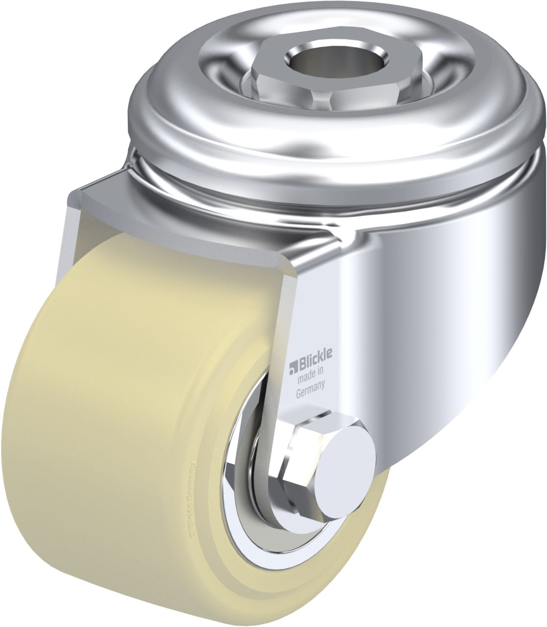 - minimum swivel head play and smooth rolling characteristic and increased service life due to the special dynamic Blickle riveting process