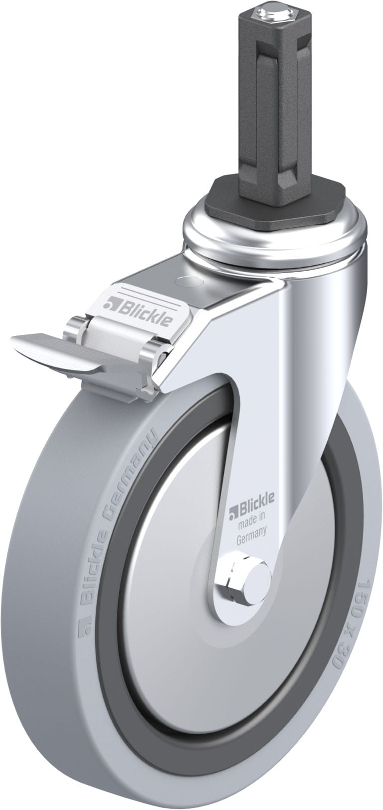 - minimum swivel head play and smooth rolling characteristic and increased service life due to the special dynamic Blickle riveting process