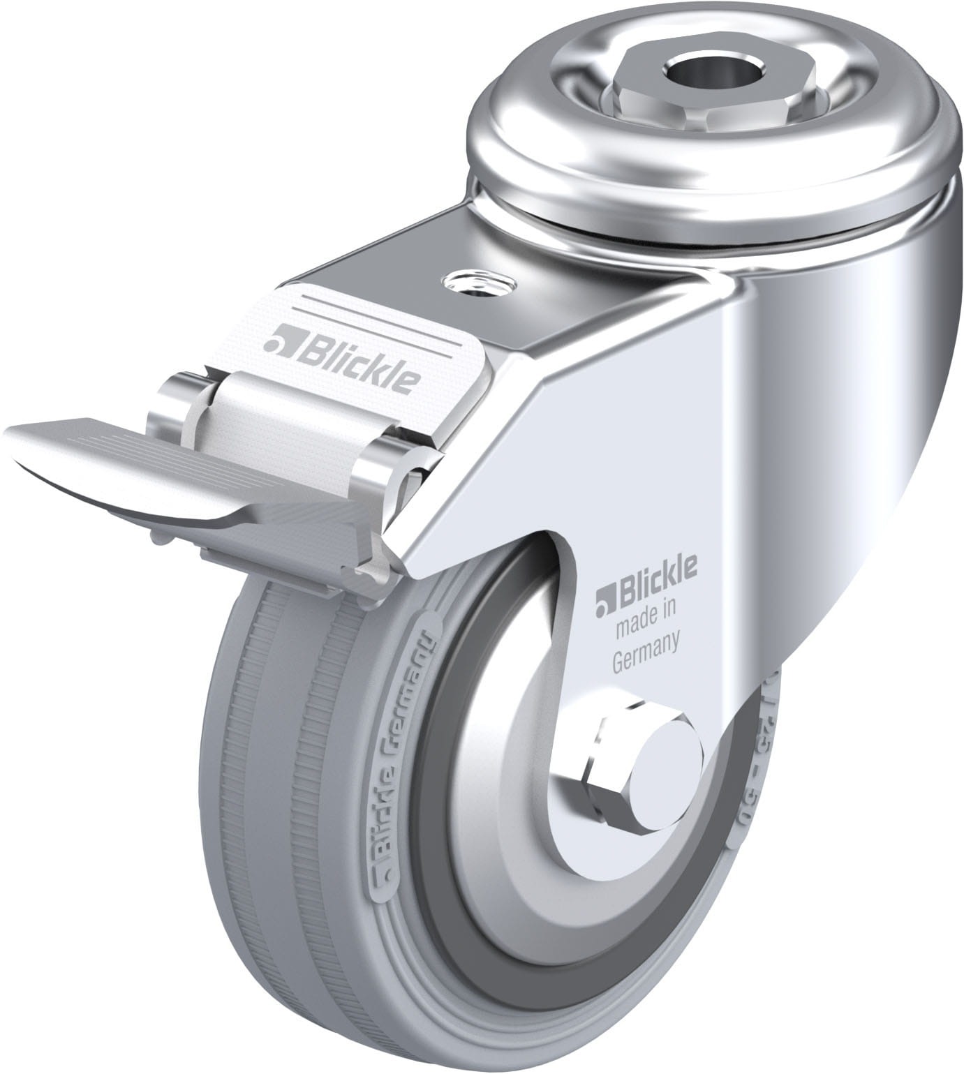 - minimum swivel head play and smooth rolling characteristic and increased service life due to the special dynamic Blickle riveting process