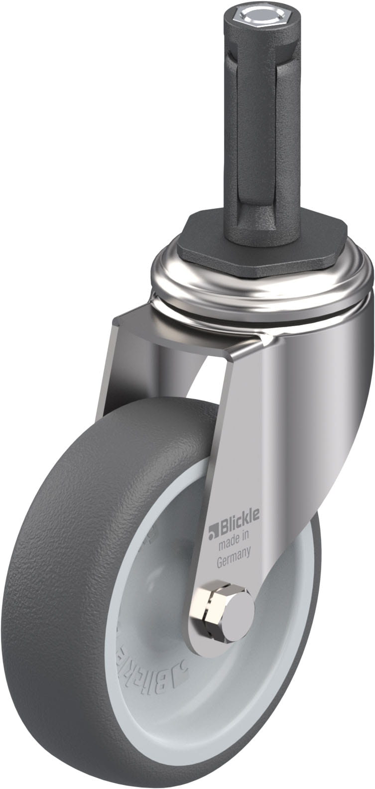 - minimum swivel head play and smooth rolling characteristic and increased service life due to the special dynamic Blickle riveting process