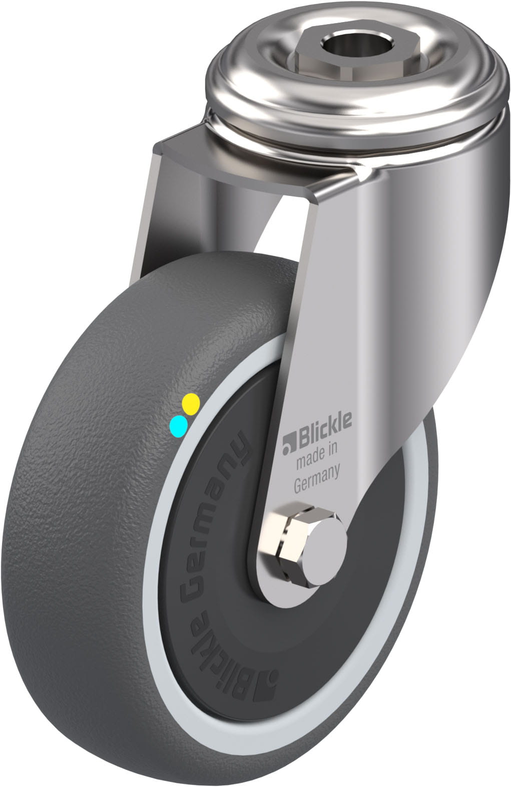- minimum swivel head play and smooth rolling characteristic and increased service life due to the special dynamic Blickle riveting process