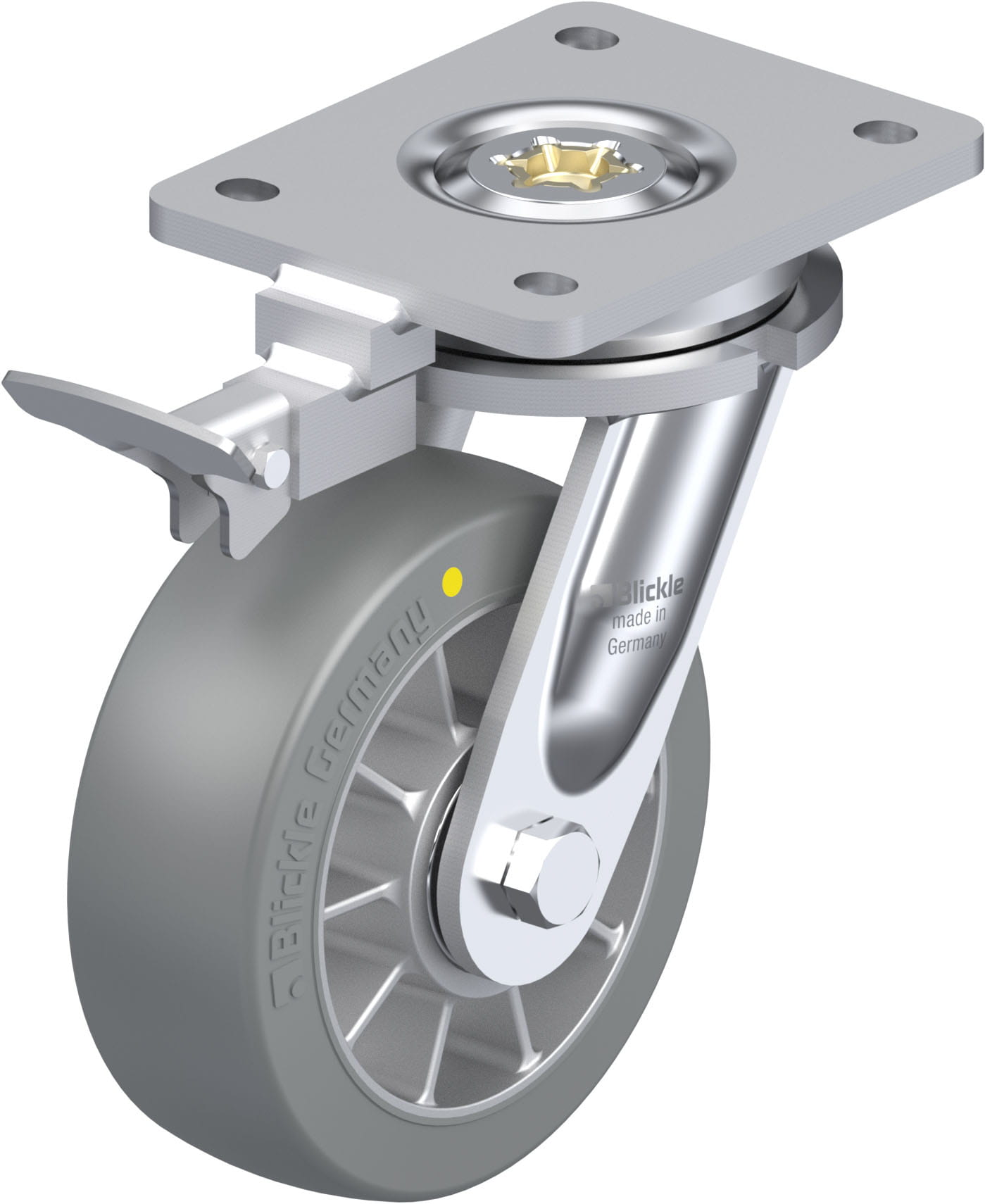 • tread: high-quality polyurethane elastomer Blickle Extrathane®, hardness 92 Shore A, colour grey, non-marking, non-staining