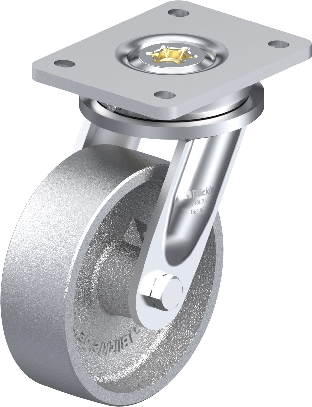 Heavy duty welded steel swivel castor, cast iron wheel