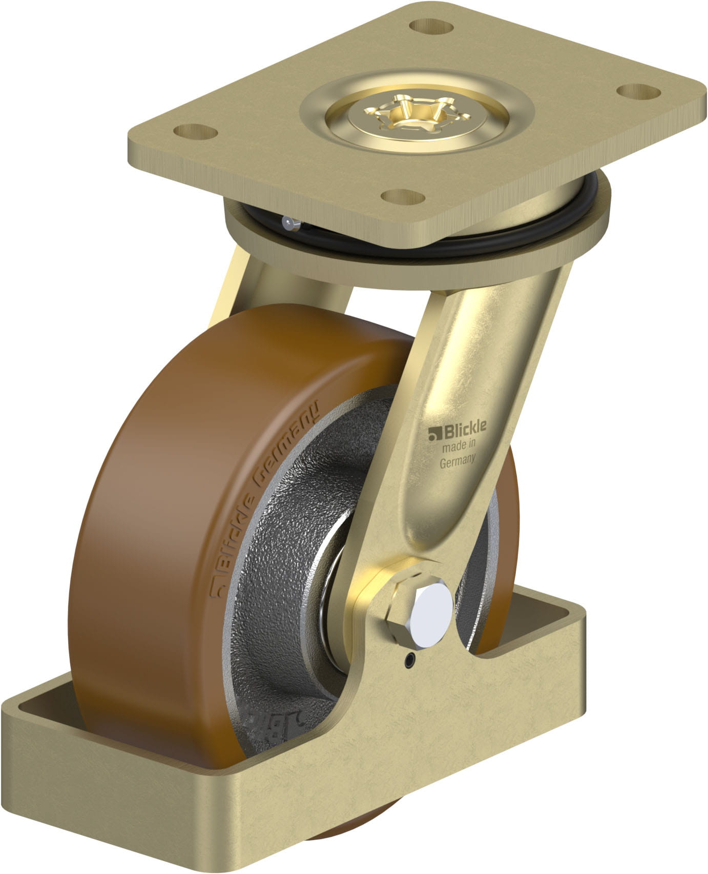 - tread: high-quality polyurethane elastomer Blickle Besthane®, hardness 92 Shore A, colour brown, non-marking, non-staining